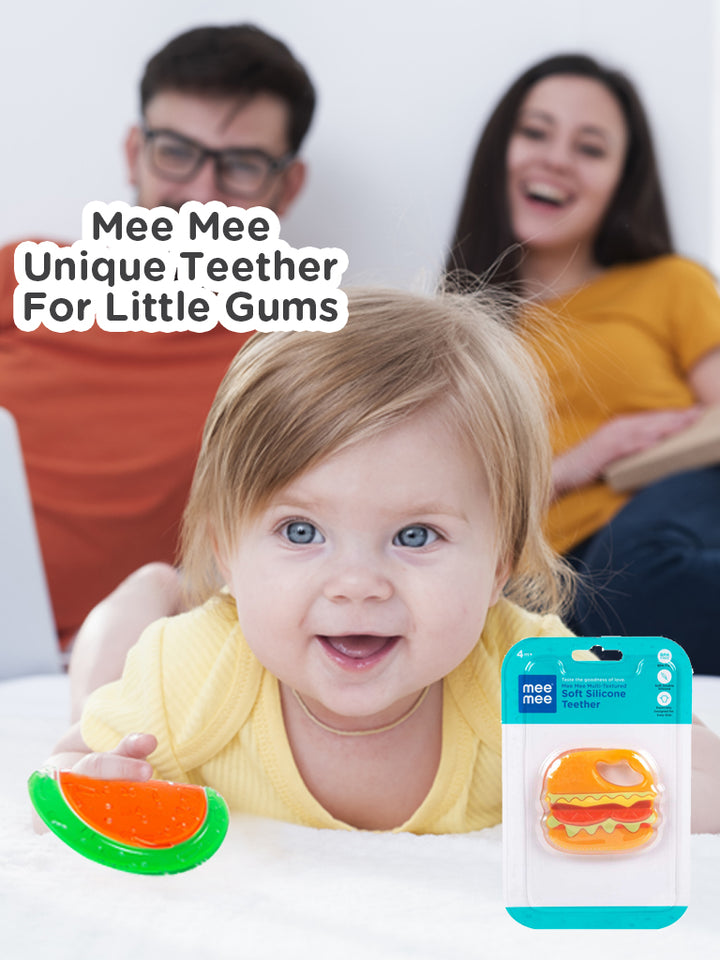 As your baby grows, you will watch him/her try to chew on plenty of things to soothe his/her gums. Mee Mee Multi-Textured Soft Silicone Teether not only provides gentle respite to the gums but also has a textured surface that provides the requisite amount of oral stimulation to your baby for enhanced gums development.