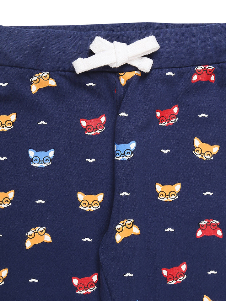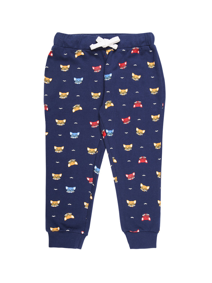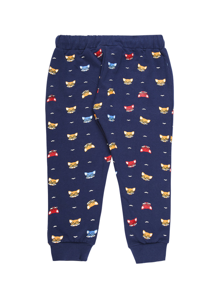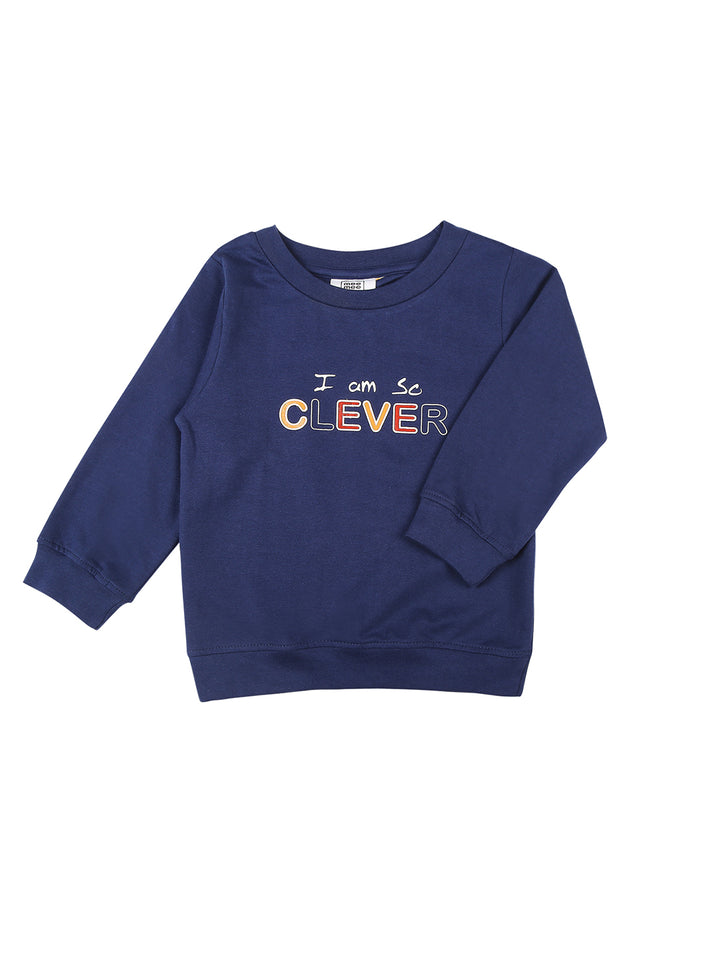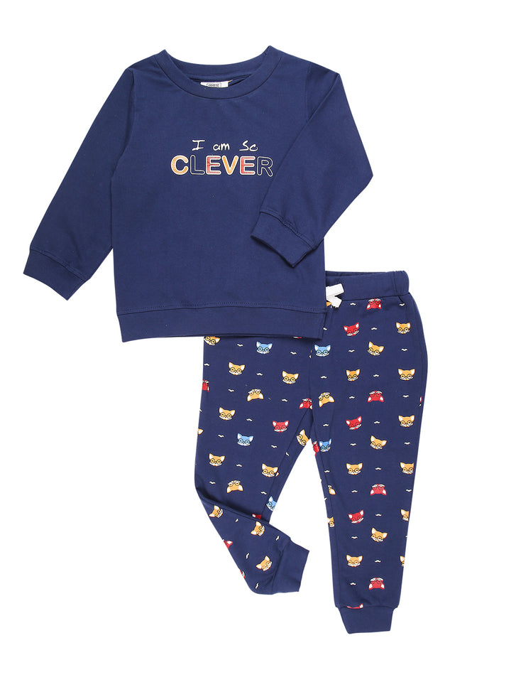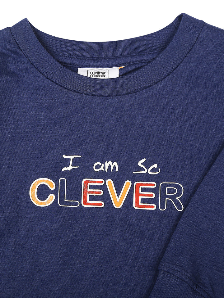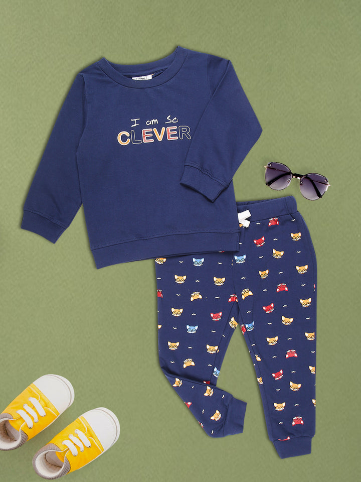 Mee Mee Navy Cotton Jogger Set for Kids | Printed Joggers & "Clever" Sweatshirt