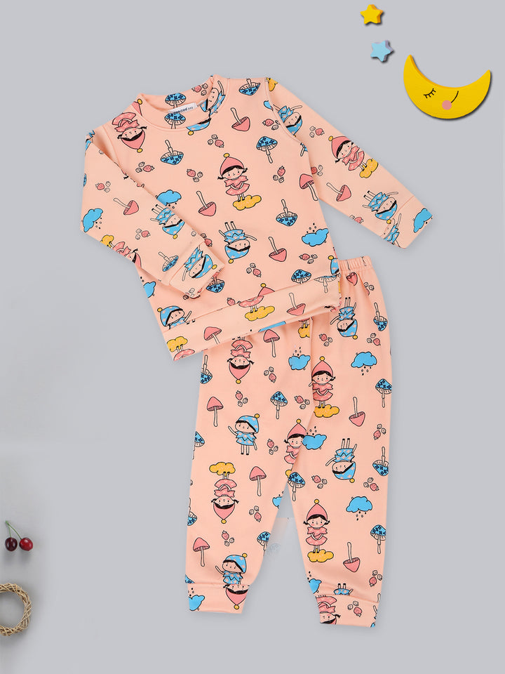 Mee Mee Pink Cotton Nightsuit for Girls | Cute Cartoon Print for Cozy Sleepwear