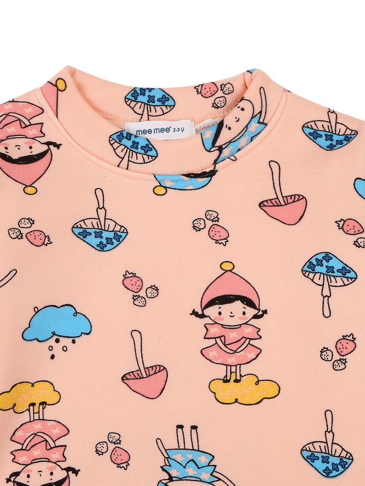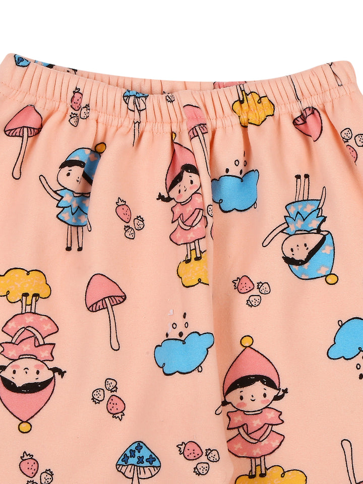 Mee Mee Pink Cotton Nightsuit for Girls | Cute Cartoon Print for Cozy Sleepwear