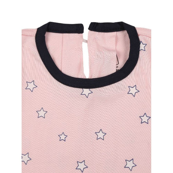 Our Frock is a value pack of good combination of style and comfort. This Blue with pink short sleeve frock will be a perfect addition to your little ones wardrobe. Made from 100% cotton, Frock is comfy and the snap button opening at back makes it easy for changing.