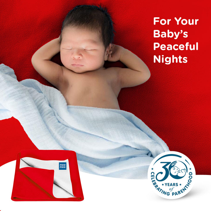 Babies need to be kept in dry and clean beds for optimal health and hygiene. Mee Mee Breathable Bedding Protector Mat gives protection against bed-wetting. Made of premium quality material that feels soft to your baby skin the dry sheets keeps the baby bed dry and clean all day and night avoiding rashes because of wetness. The Ultra absorbance quality absorbs moisture quickly and gives water protection and keeps the surface dry so baby can enjoy all activities uninterrupted. These total dry sheets help in diaper free nights as they soak upto 8 times water. This multi use dry sheet mats can be used in cradle, cot, prams, strollers, as playing mats, and also as baby wrapping.