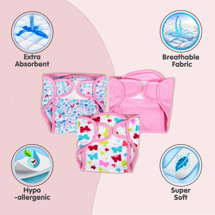 Mee Mee Reusable Baby Cloth Diaper, Double Leak Guard, High Absorption, Stain-Proof Comfort & Protection, 3m+