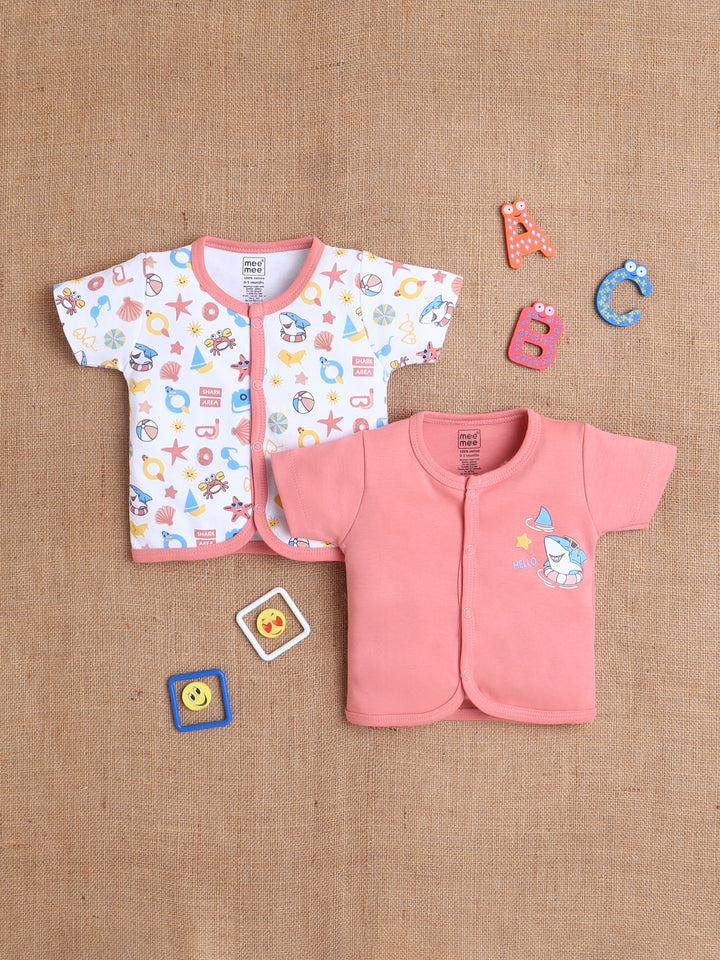 Keep your baby comfy all day with Mee Mee's cotton jabla set in a soothing rust color. This pack of 2 front-open baby vests is perfect for summer, made from breathable, 100% cotton fabric. Gentle on baby’s skin and easy to wear, they’re ideal for daily use. Stylish prints meet functionality for your little one’s wardrobe.