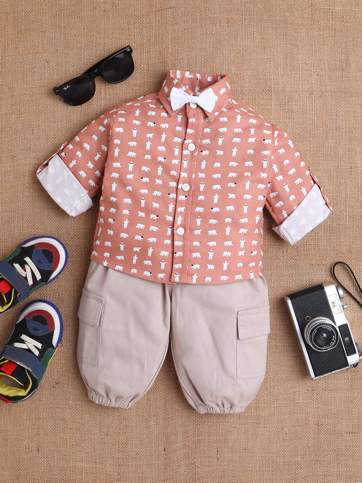 Mee Mee Rust Cotton Shirt and Trouser Set With Bow for Baby Boys – Stylish, Comfy & Breathable