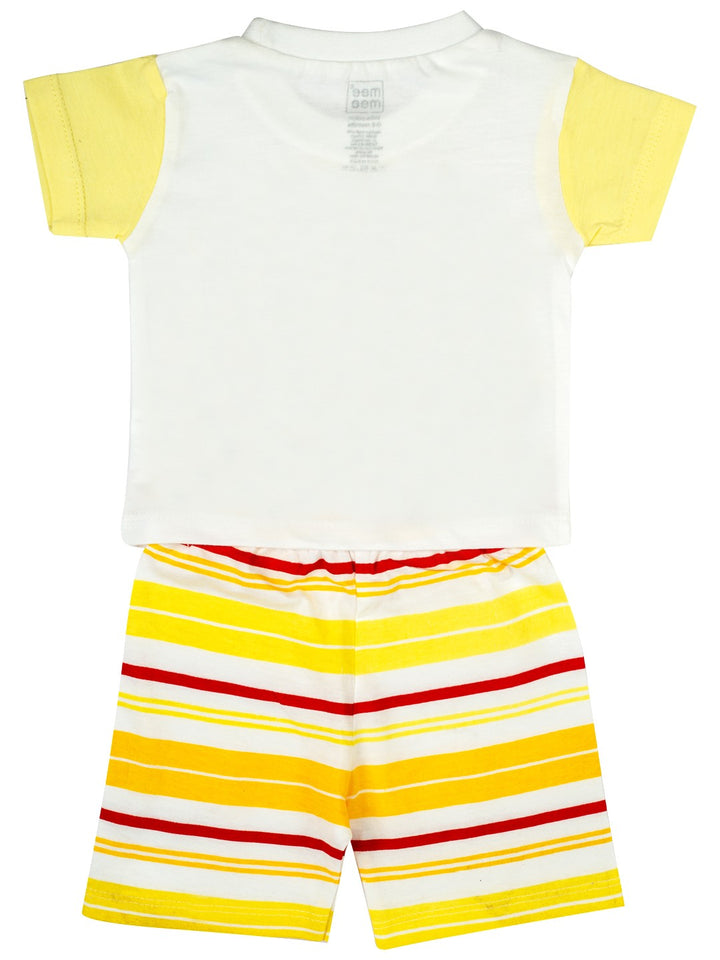 We bring to you this stylish T-Shirt with Shorts set that will be a great addition to your baby Boys essentials collection. The T- Shirt features round neck and Car print & shorts style with with elasticated waist makes it easier for dressing. Made from 100% cotton this Short set is comfy and perfect for all your baby’s needs.