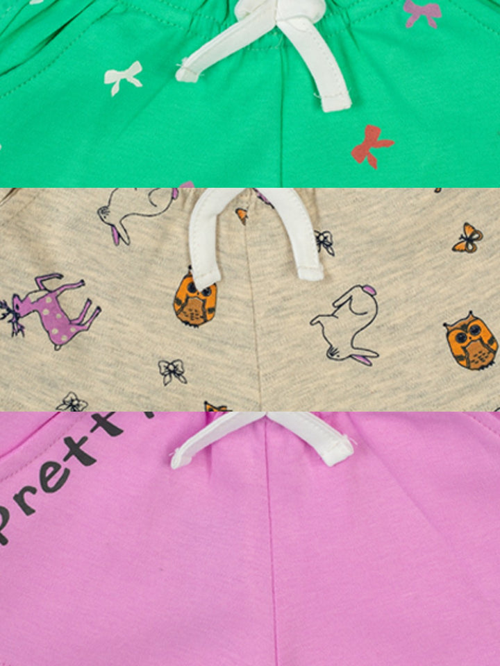 Our Shorts value pack of 3 is a good combination of style and comfort.This set of Oat Mint & Lilac one printed & one solid shorts will be a perfect addition to your little infants wardrobe. Made from 100% cotton these Shorts are comfy and perfect for all your baby’s needs.