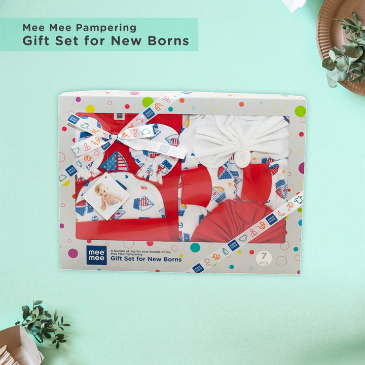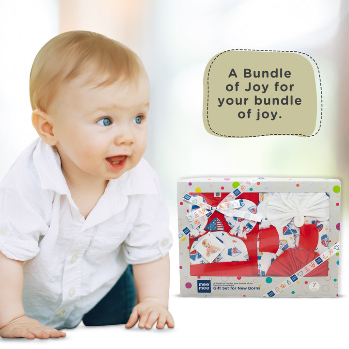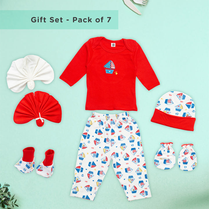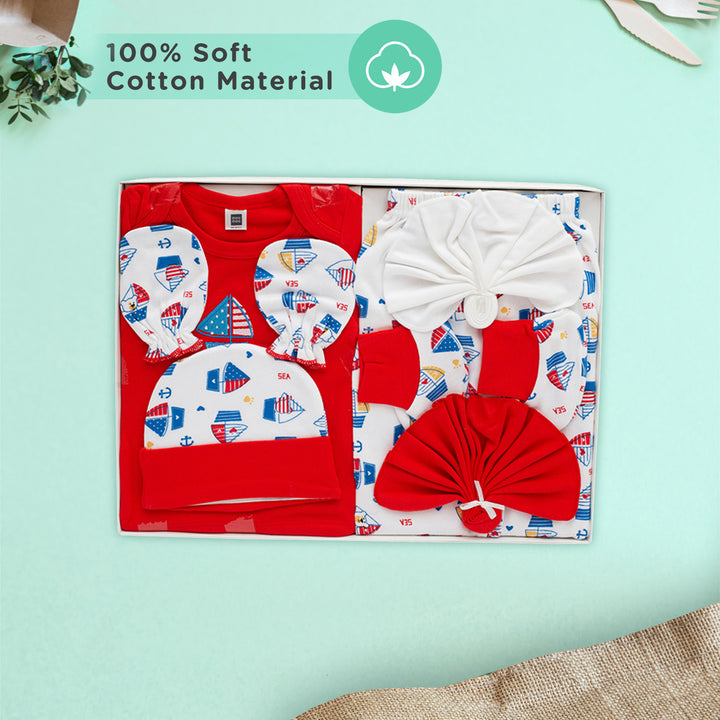 Soft Cotton New Born Baby Gift Set for Baby Boys, Baby Girls (7 Pieces, Red)