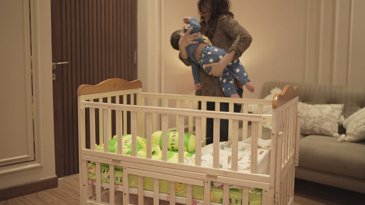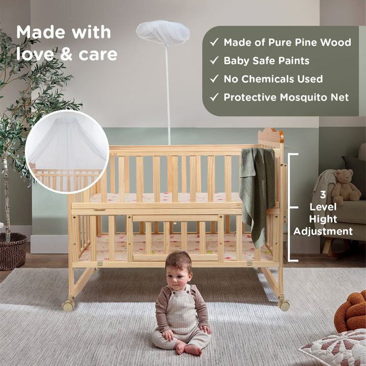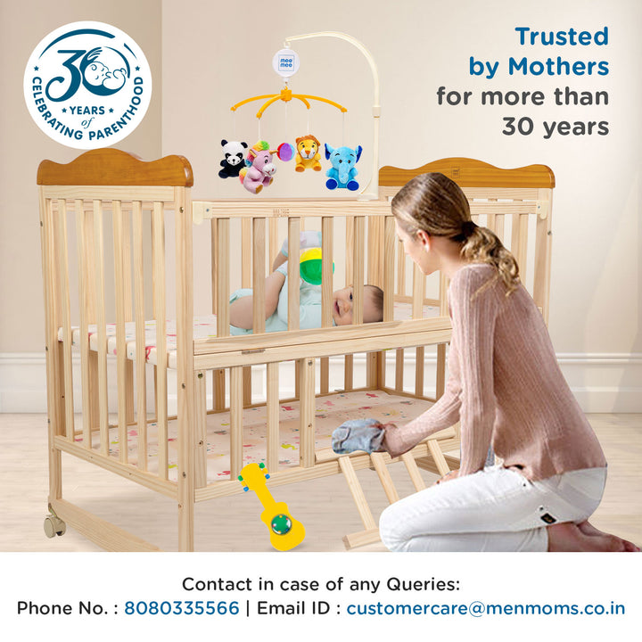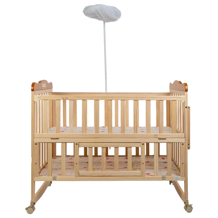Mee Mee Spacious Extendable Swinging Baby Cot Bed | Rocking Baby Crib | Premium Quality Wood | Multi-Feature Baby Bed | Extra Spacious Storage Space | Attach to Parent Bed | 0-6 Years | Upto 22 Kgs |
