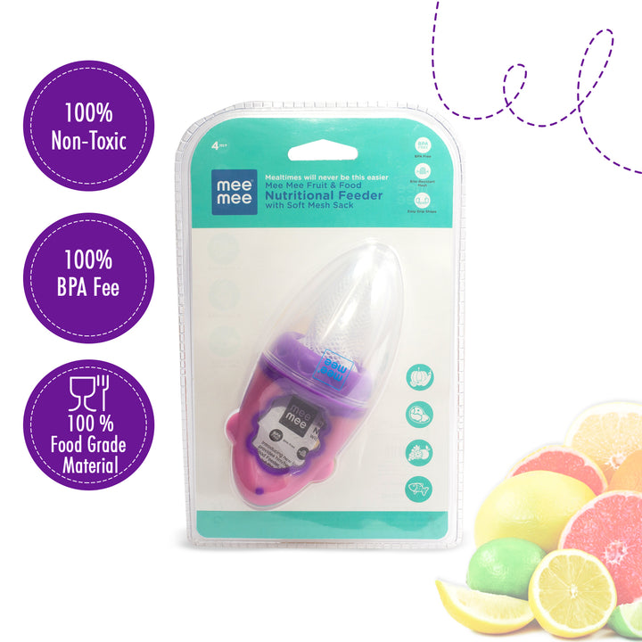 The transition from a liquid based diet to semi solids can be confusing and difficult for your baby. He/she may not want to take to spoon-feeding after being habituated to bottle feeding. The Mee Mee Squeezy Silicone food feeder is the perfect combination of the advantages of bottle feeding and spoon feeding making the transition easier for your baby and for you. It holds baby food eliminating the need for the jar, packs the food into a single utensil and with one squeeze, you get easy one-hand feeding.