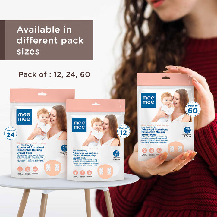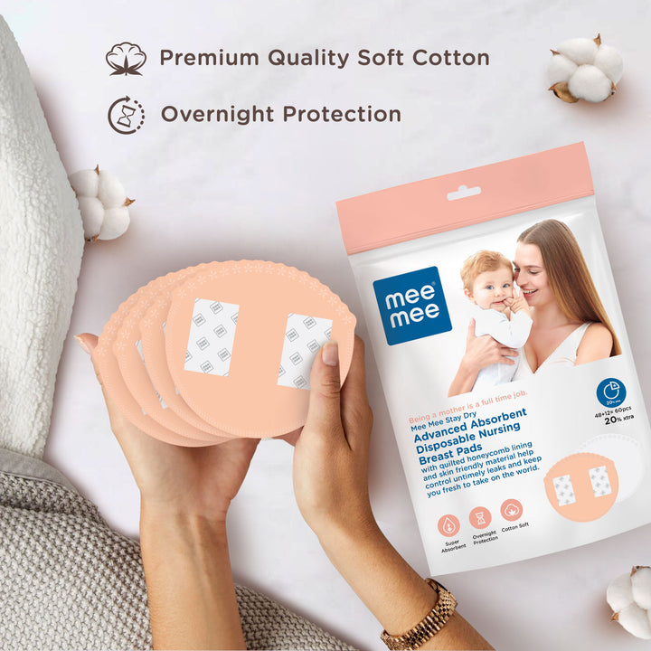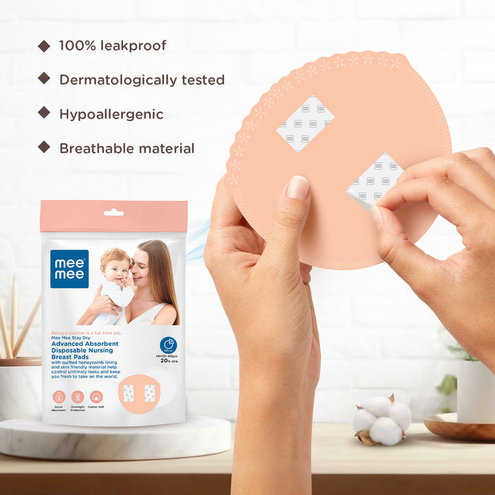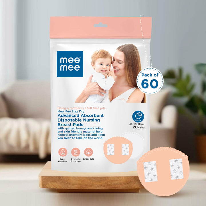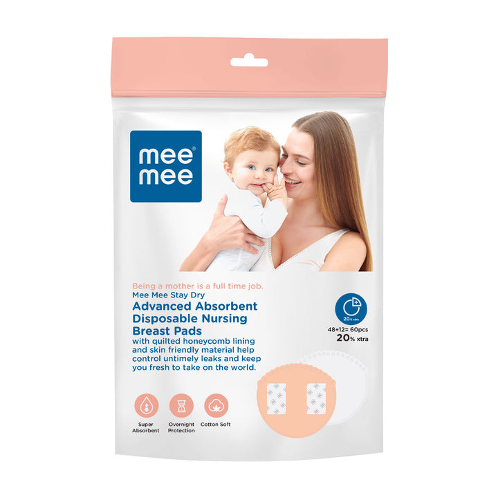 Mee Mee Stay Dry Advanced Absorbent And Cotton Soft Disposable Nursing Breast Pads.