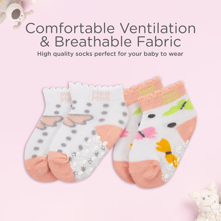 Soft, Cuddly, and Adorable: Indulge your baby's feet in irresistibly soft, cuddly socks adorned with adorable designs for ultimate comfort and cuteness. Easy to Put On and Take Off: Enjoy hassle-free dressing with socks designed for easy put on and removal, making daily routines a breeze. Warmth and Protection: Provide your baby's tender feet with thick, cozy socks that offer warmth and protection against harsh elements like sunlight and cold. Style Statement: Elevate your baby's wardrobe with a delightful array of colors and designs. Machine Washable: The socks are machine washable for convenient care. Can Be Worn on All Occasions: Versatile in style, these socks are perfect for any occasion, ensuring your baby is both comfortable and stylish, no matter the event. Extra Ease: Comes with ankle heel pull tab for extra ease.