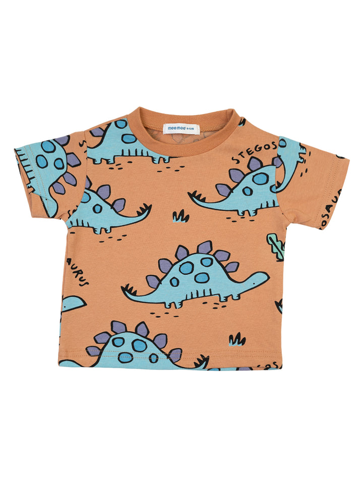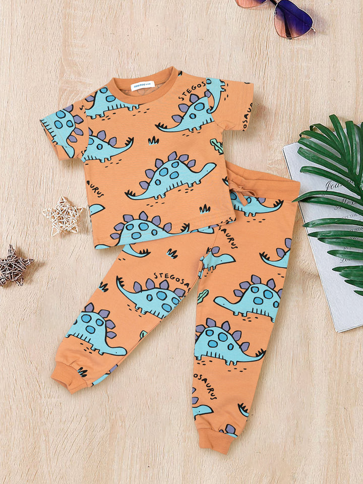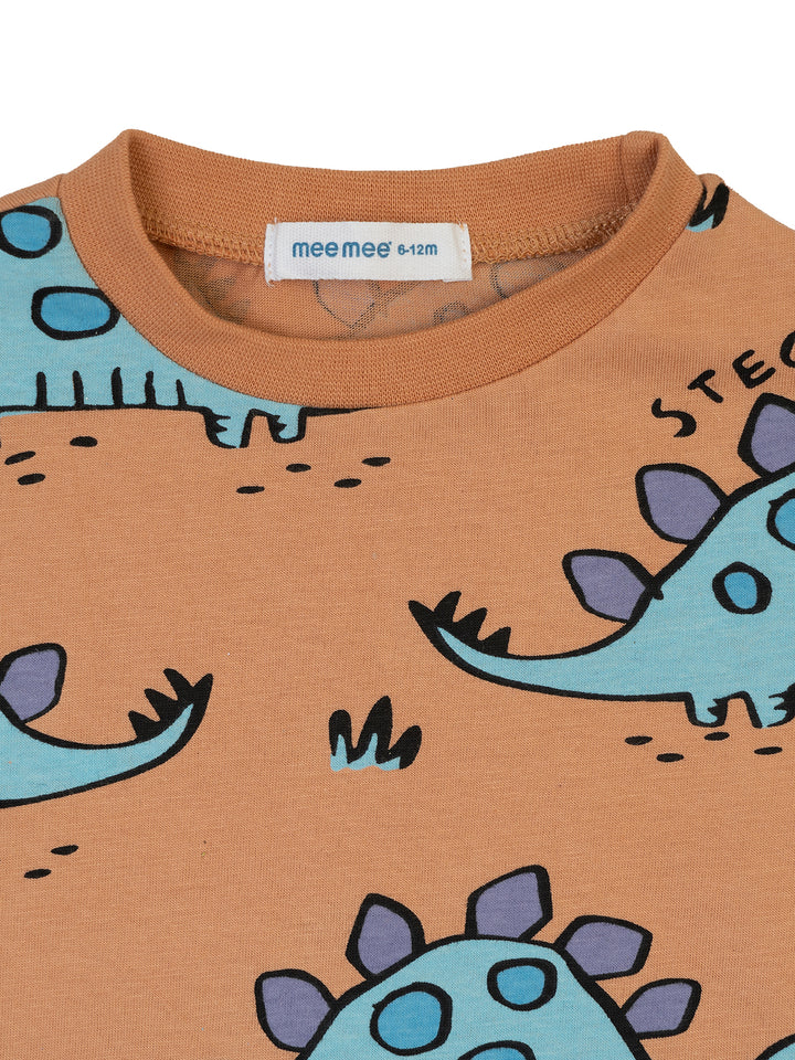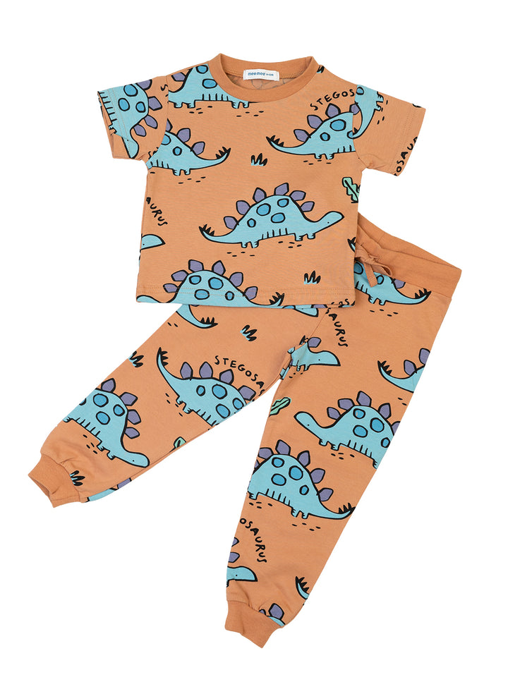 MEEMEE Adorable Toddler Pajamas Set with Rust Dinosaur Print