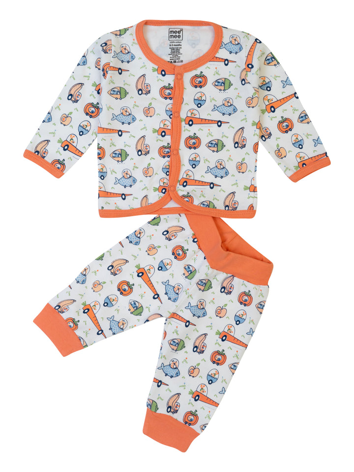 Snuggle your little one in the adorable MEEMEE baby boy's pajamas and pants set! This charming coral legging set features delightful cartoon characters that will spark joy and imagination during bedtime. Crafted from soft, breathable cotton, it ensures your baby stays cozy and comfortable all night long.