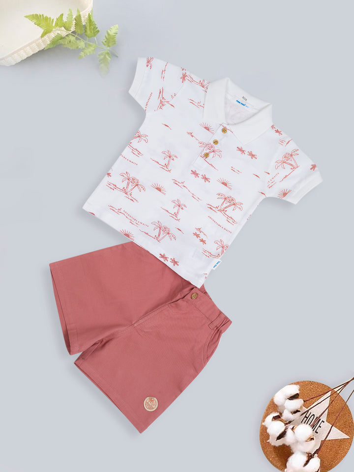 Meemee Baby Boy's Knit Short Set: Adorable White Shirt Paired with Pink Shorts