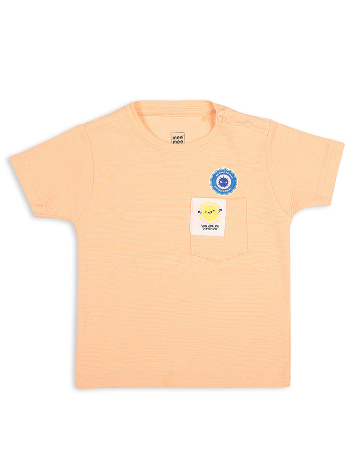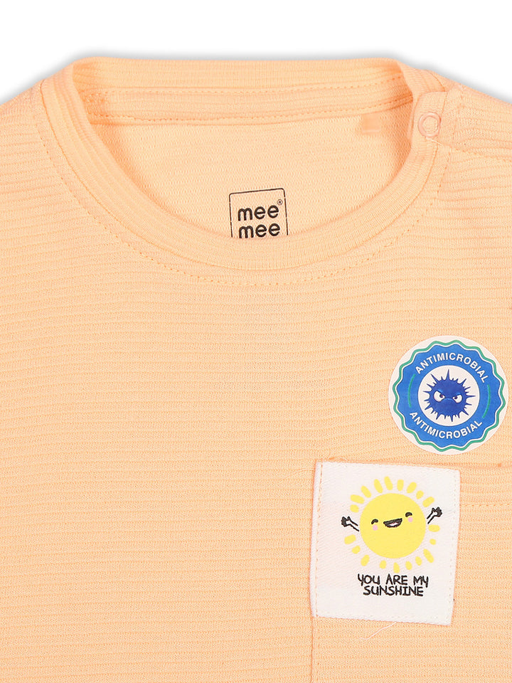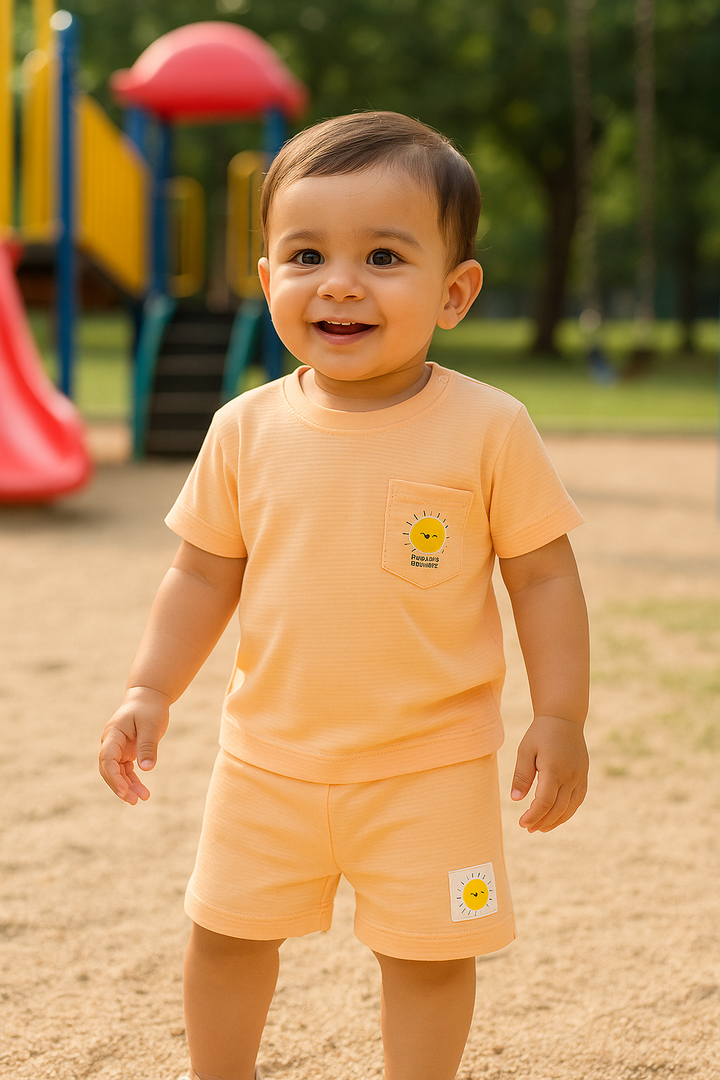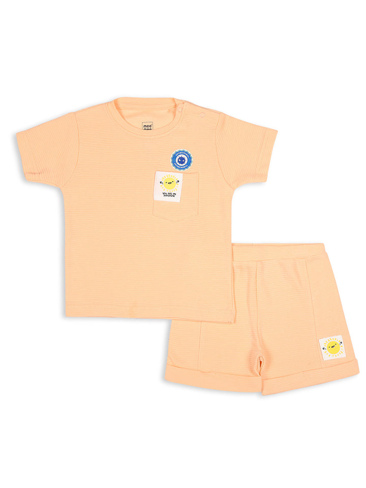 MEEMEE Baby's Peach Ottoman Short Set Embellished with a Joyful Smiley Face Design