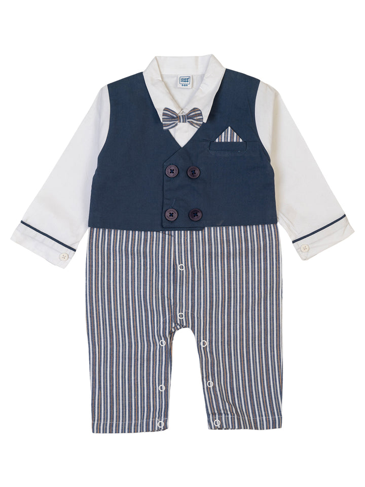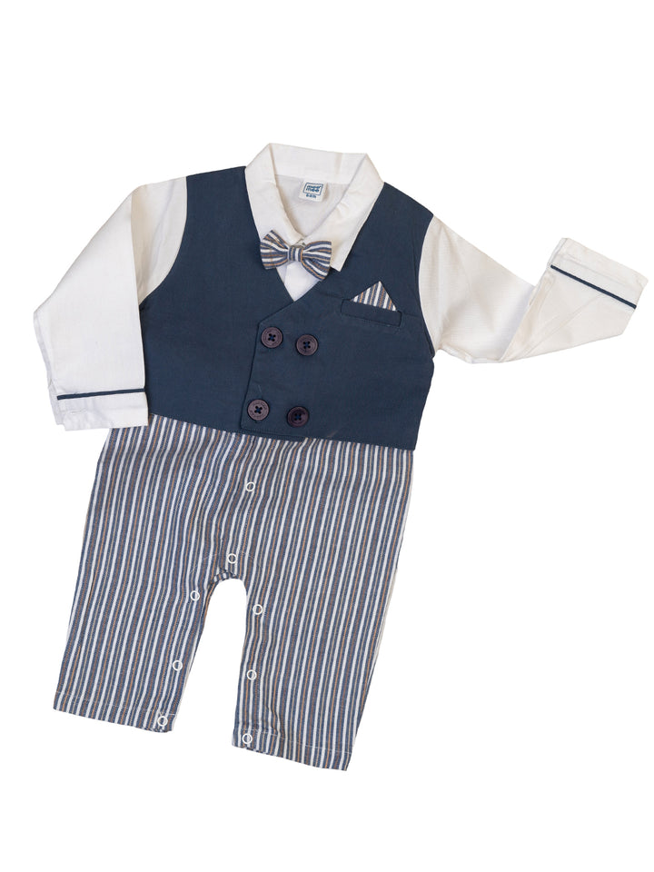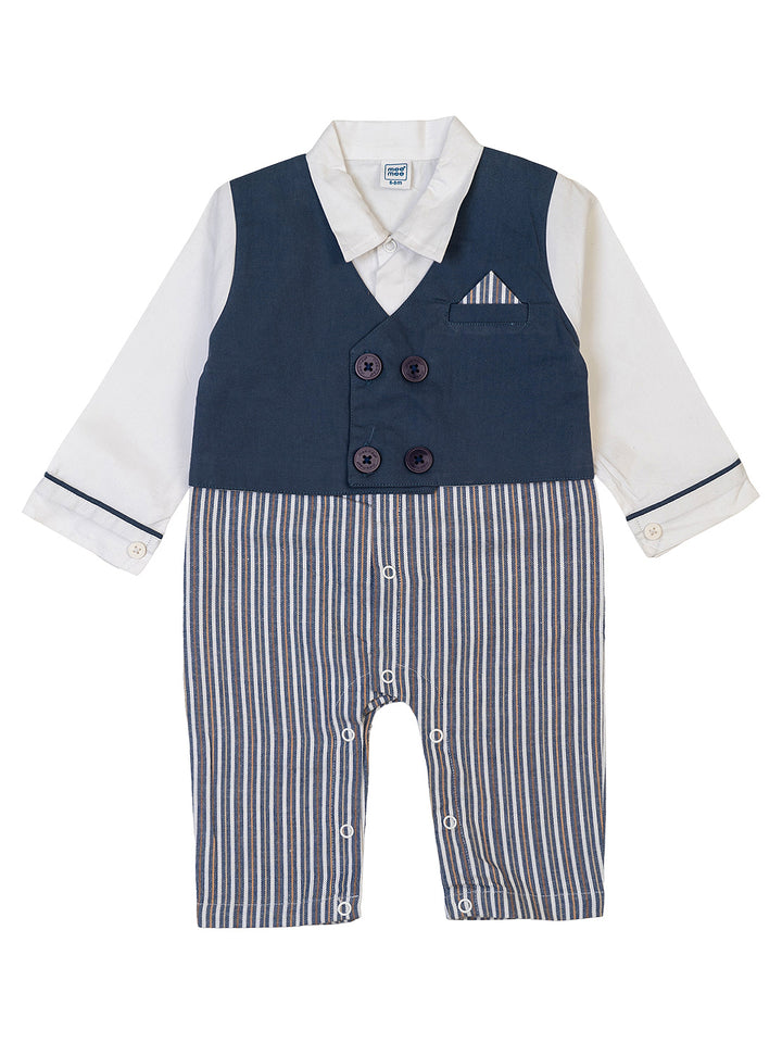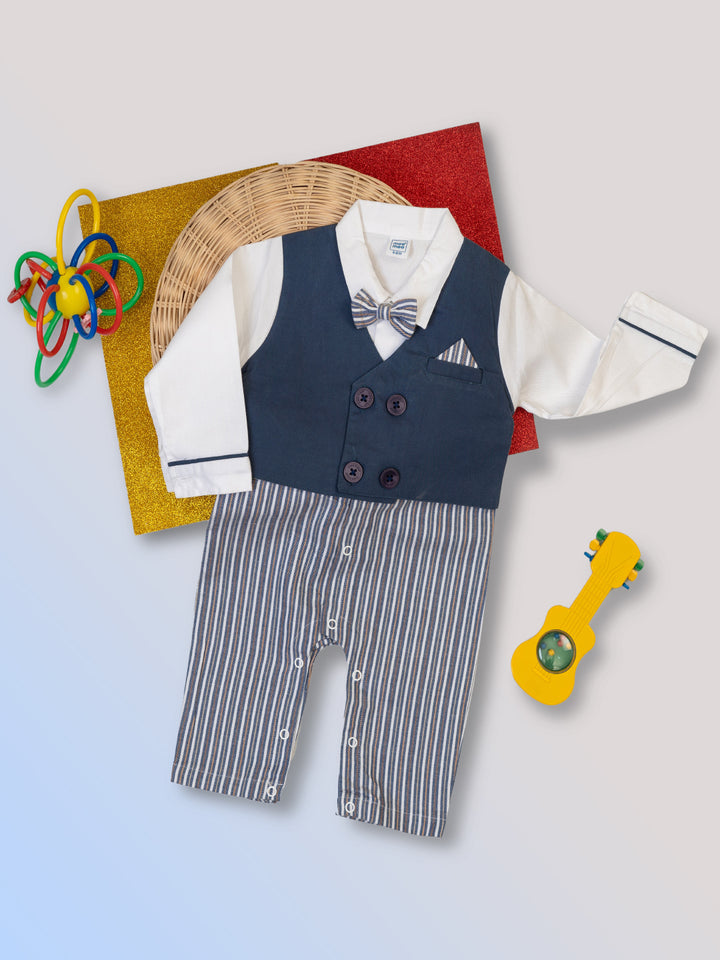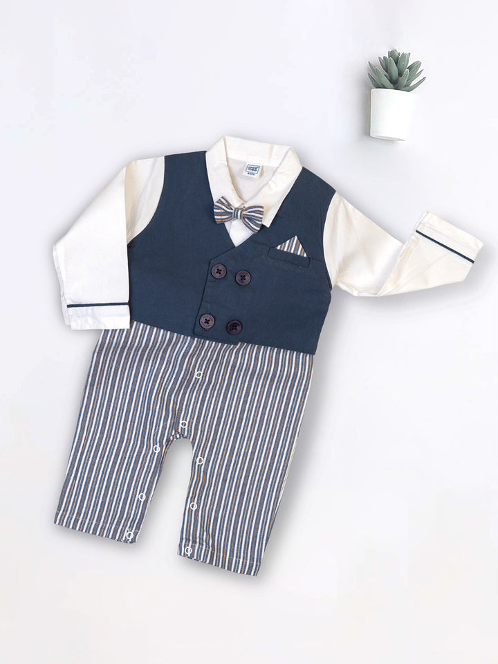 Meemee Blue and White Striped Cotton Romper for Baby Boys - Adorable and Comfortable Wear