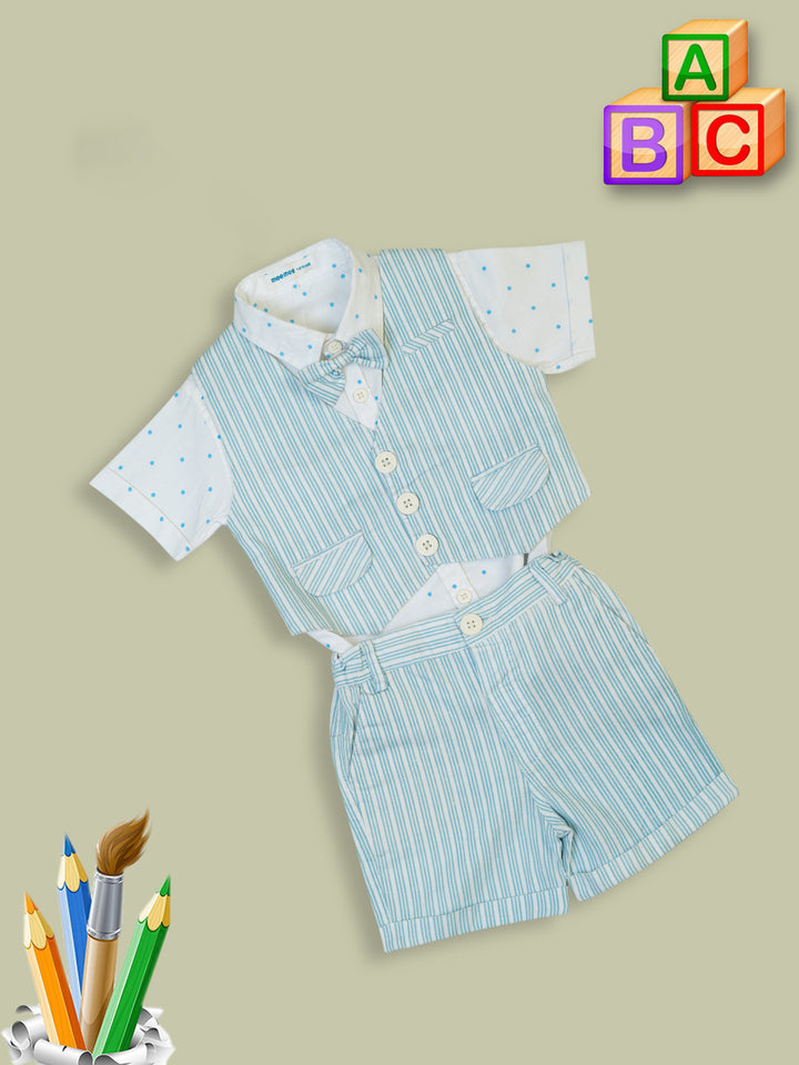 Meemee Blue and White Striped Cotton Waistcoat Set for Baby Boys