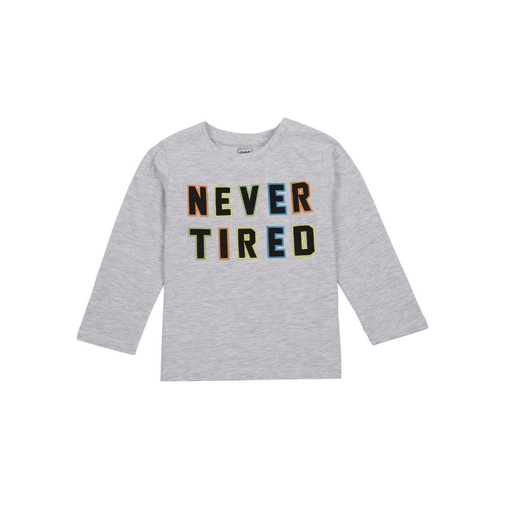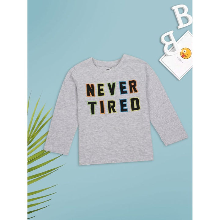 Boys Full Sleeves Printed Cotton T-Shirts In Grey Melange