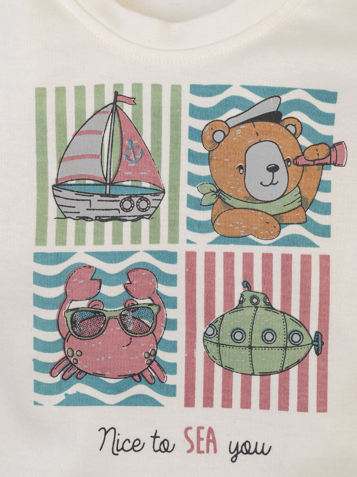 Dress your little one in style with this adorable baby boy's outfit from MEEMEE! Featuring charming striped green shorts and a comfy t-shirt, this short set is perfect for playdates or family outings. Made from soft cotton, it ensures all-day comfort while keeping your baby looking cute and trendy.