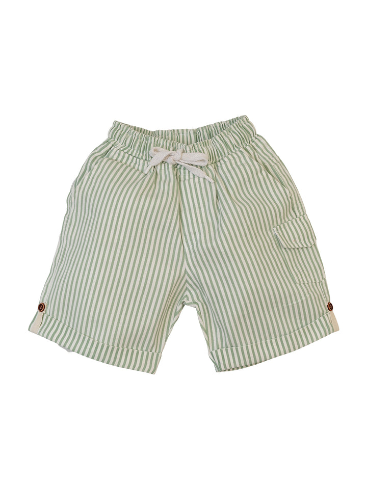 MEEMEE Green Cotton Short Set: Adorable Striped Shorts and T-Shirt for Baby Boys