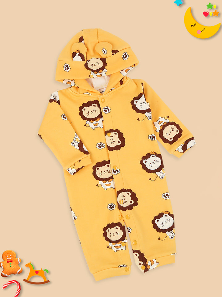 MeeMee Infants Printed Hooded Cotton Rompers. These hooded rompers for infants come with adorable printed designs. Crafted from breathable cotton, they provide warmth and style for your baby.