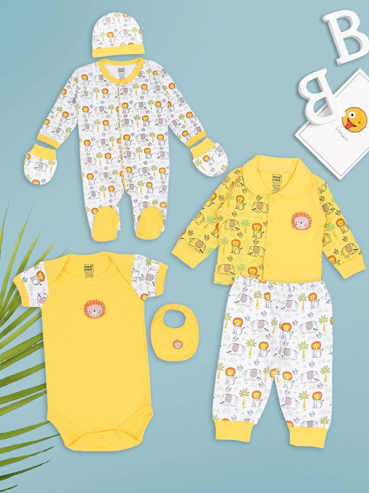 MeeMee Infants Yellow & White 6 Pcs Baby Apparel Gift Set