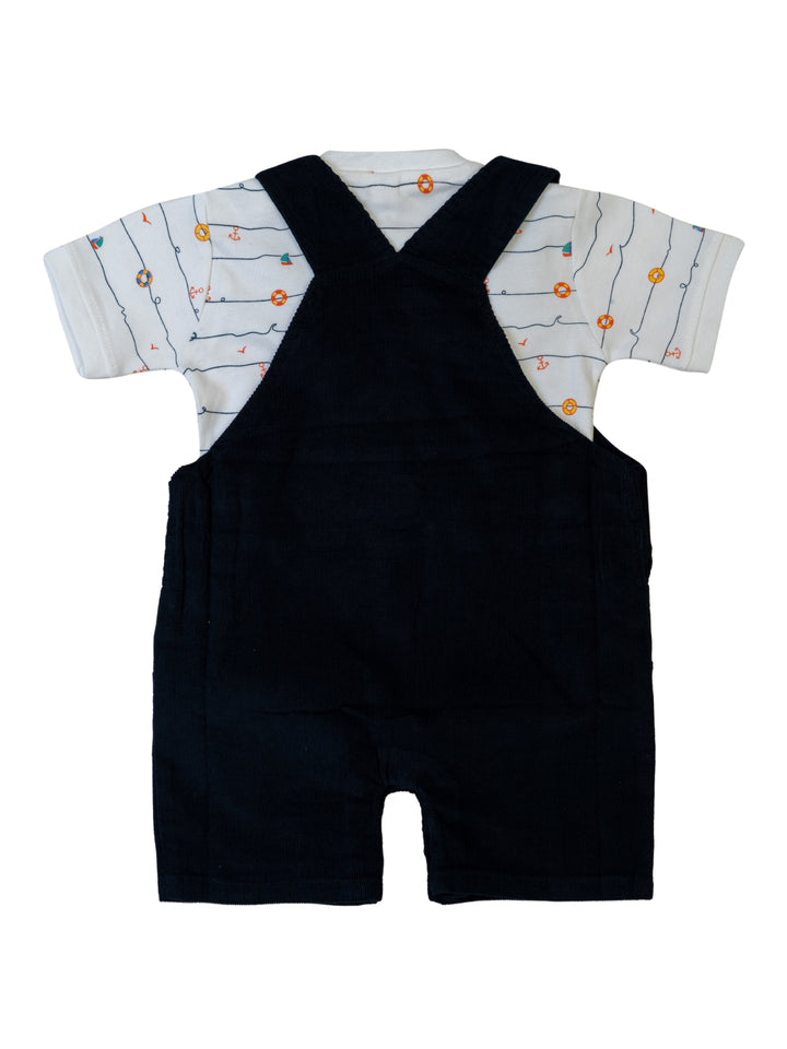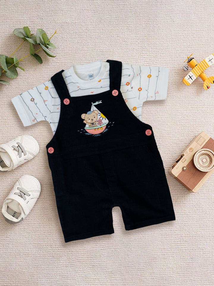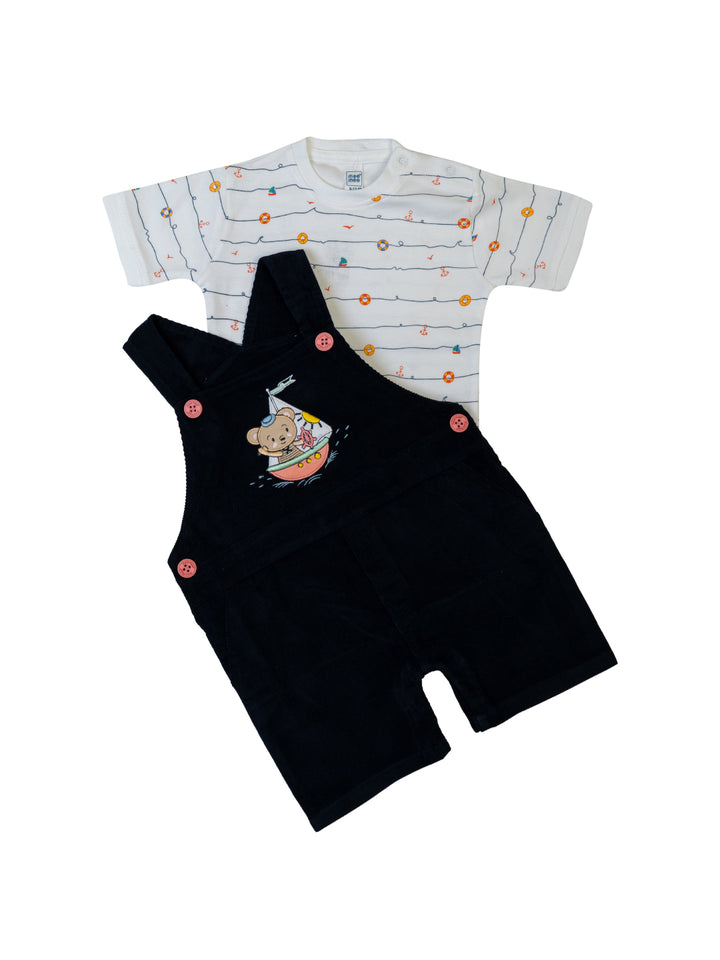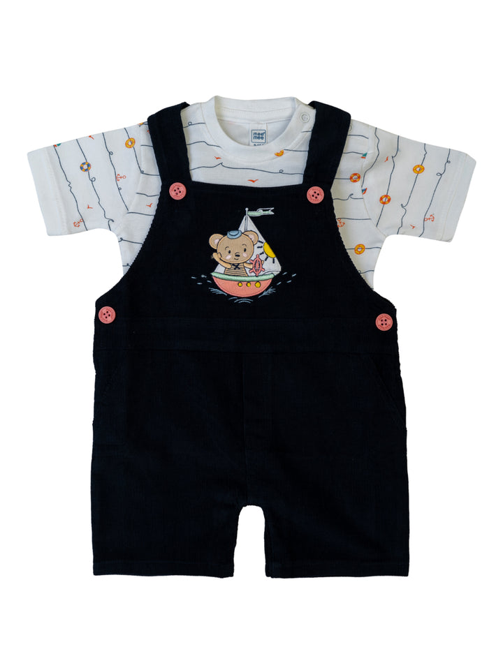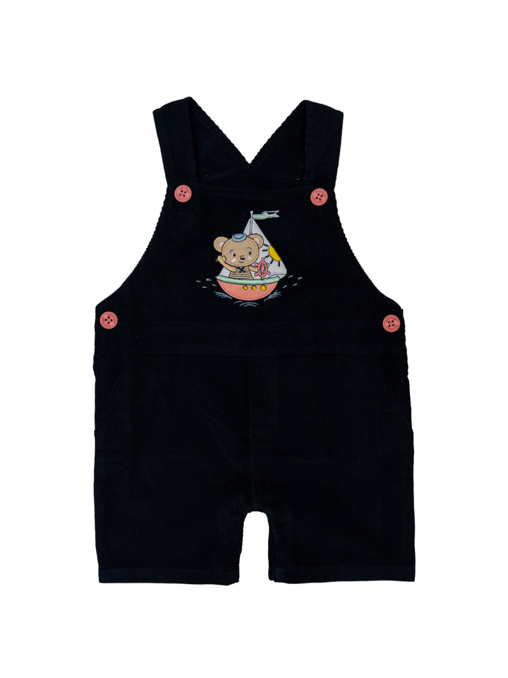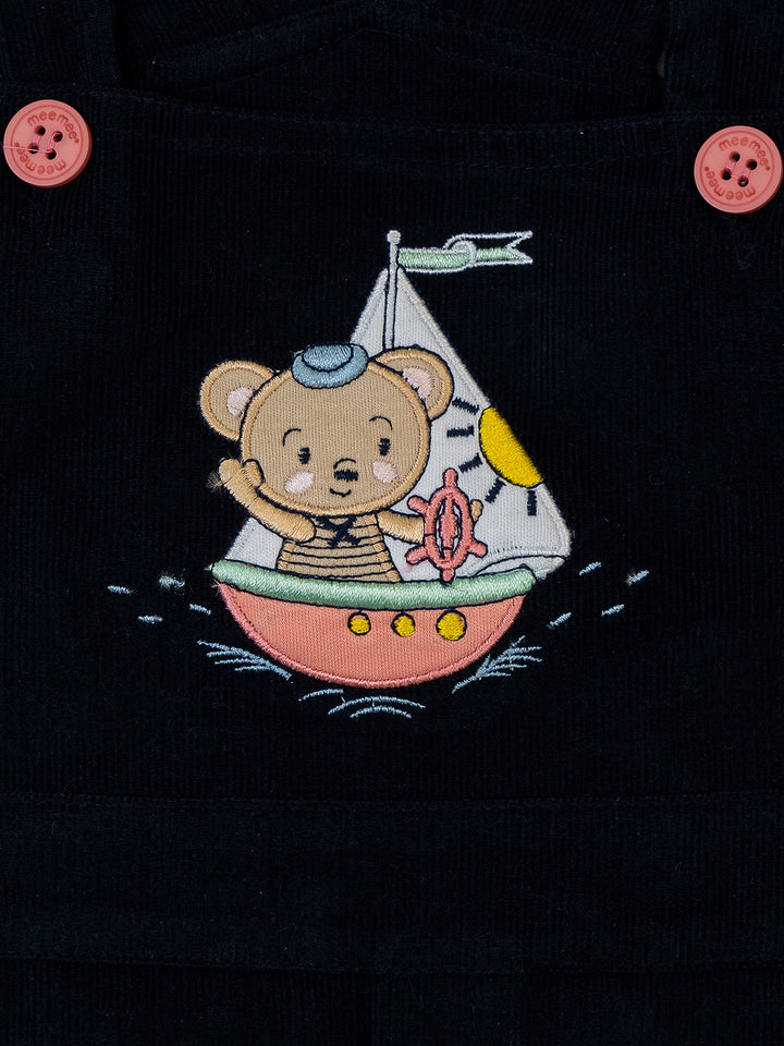 Meemee Navy Denim Baby Boy's Overalls with Adorable Bear Design