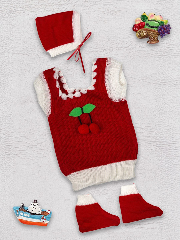 This cute red and off-white colourblocked cardigan for unisex kids includes a matching beanie and booties, offering full comfort and warmth. Made from soft cotton, it’s ideal for chilly days, ensuring your baby stays cozy and stylish during cooler weather while completing their winter look.