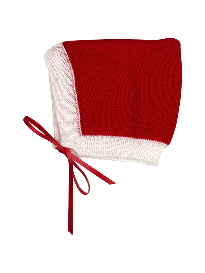MeeMee Unisex Kids Red & Off White Colourblocked Cardigan With Beanie & Booties