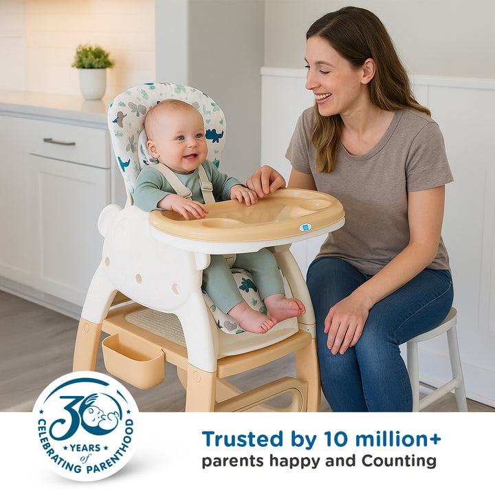 The only seating solution your baby will ever need. This versatile unit transforms from a high chair to toddler chair, booster, play table, and study station as your child grows. With easy conversions, durable build, and safety features, it’s designed for long-term use and effortless parenting.